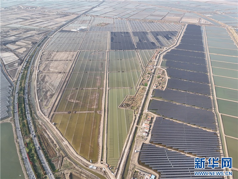 近日,在連云港經濟技術開發(fā)區(qū)猴嘴街道三峽青口鹽場,近78萬塊光伏板如波浪般起伏,深藍色板面倒映著魚塘的波光,蔚為壯觀。