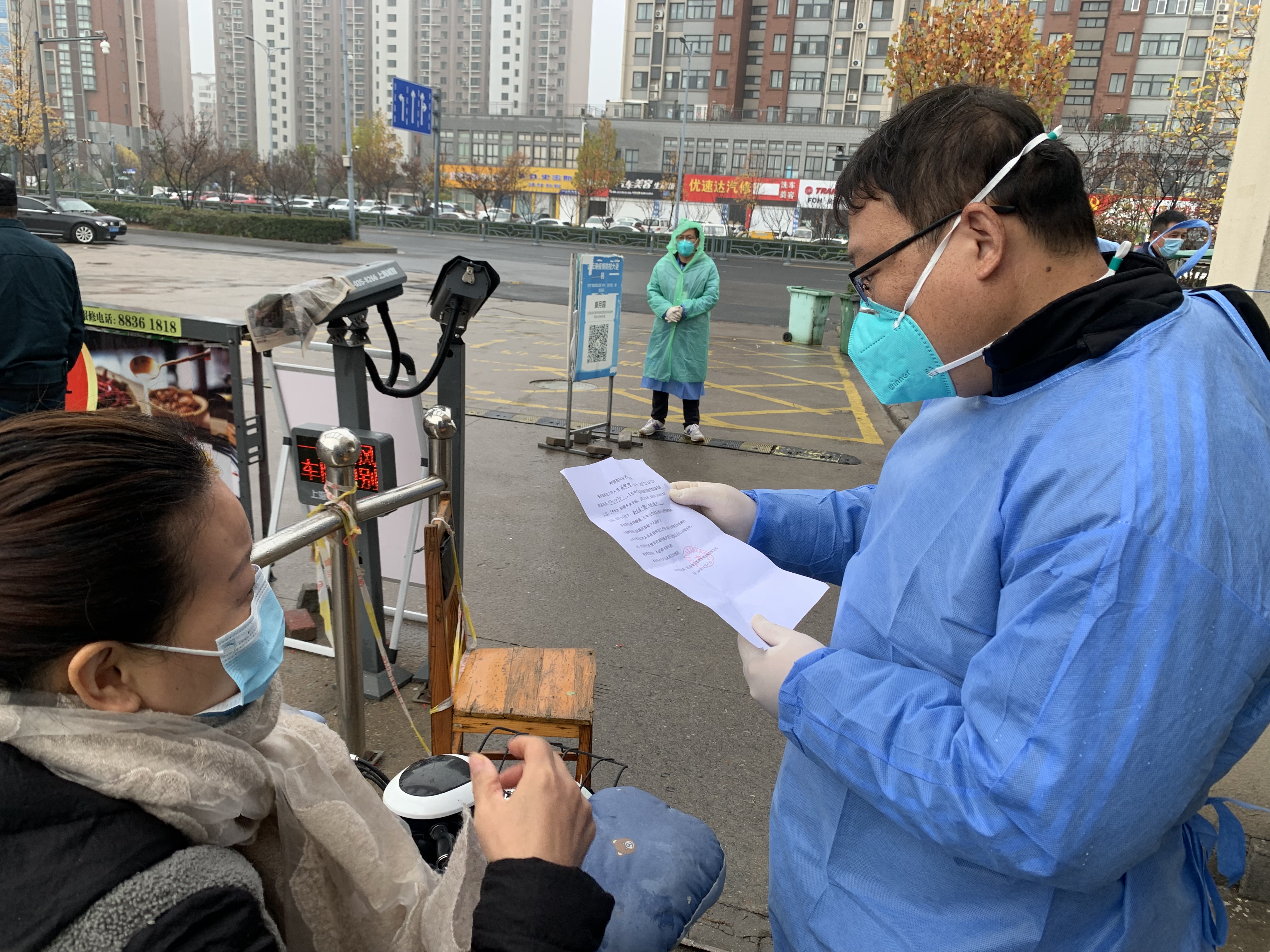 在凌州社區(qū)新月園小區(qū),供電工程分公司志愿者們對進出小區(qū)人員測量體溫,查驗健康碼、核酸報告,核對人員身份信息、外出證明、核酸檢測信息錄入等工作。
