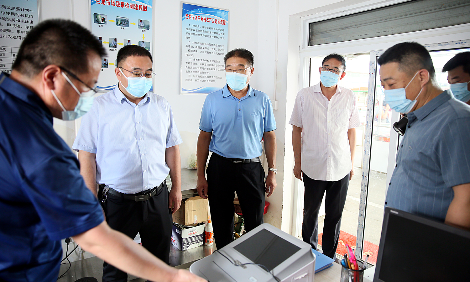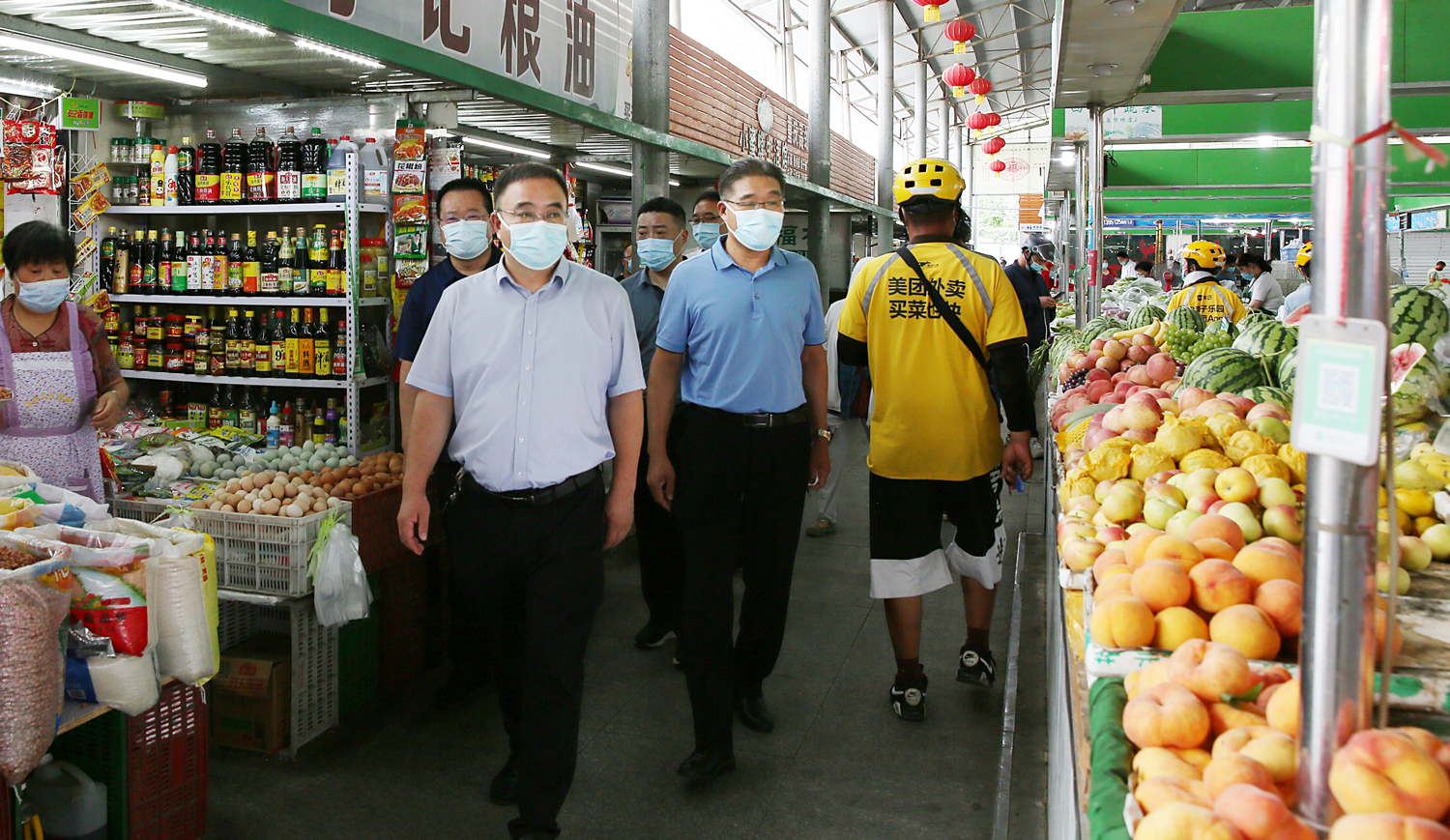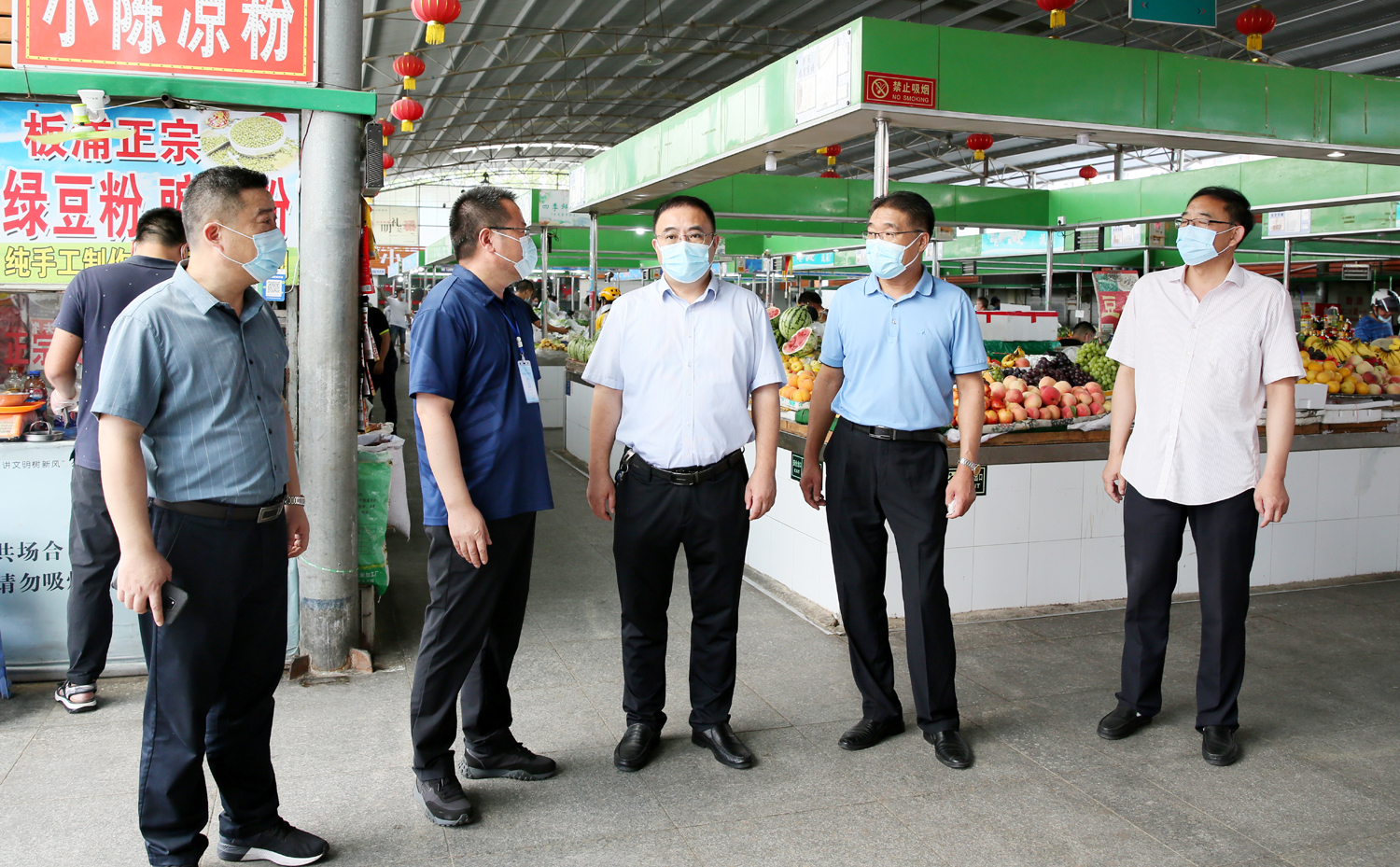 楊龍一行按防疫要求完成體溫測量、蘇康碼掃碼后,進(jìn)入市場區(qū)域,認(rèn)真察看市場內(nèi)口罩佩戴、掃碼查驗、體溫檢測等基礎(chǔ)防疫措施,仔細(xì)詢問人員管控、防疫消殺等制度落實情況。查看了解糧油肉蛋奶及水果、蔬菜等重要食品的市場供應(yīng)、保質(zhì)穩(wěn)價等情況。楊龍指出,農(nóng)貿(mào)市場人員流動性大、接觸頻繁,是疫情防控的重要區(qū)域。金航公司要切實落實好主體責(zé)任,按照市疫情防控指示精神和集團(tuán)“十排查”“十到位”的要求,嚴(yán)格落實好各項措施,做好入口人員管理,嚴(yán)格落實體溫檢測、佩戴口罩、健康碼掃碼等工作,全面落實環(huán)境清潔消毒。要嚴(yán)把食品安全關(guān),嚴(yán)格履行相關(guān)手續(xù),確保食品流通各環(huán)節(jié)安全可控。要規(guī)范經(jīng)營,確保市場食品供應(yīng)充足、價格穩(wěn)定、消費安全。同時要積極引導(dǎo)群眾和工作人員做好自我防護(hù),保持良好衛(wèi)生習(xí)慣,倡導(dǎo)健康生活方式。