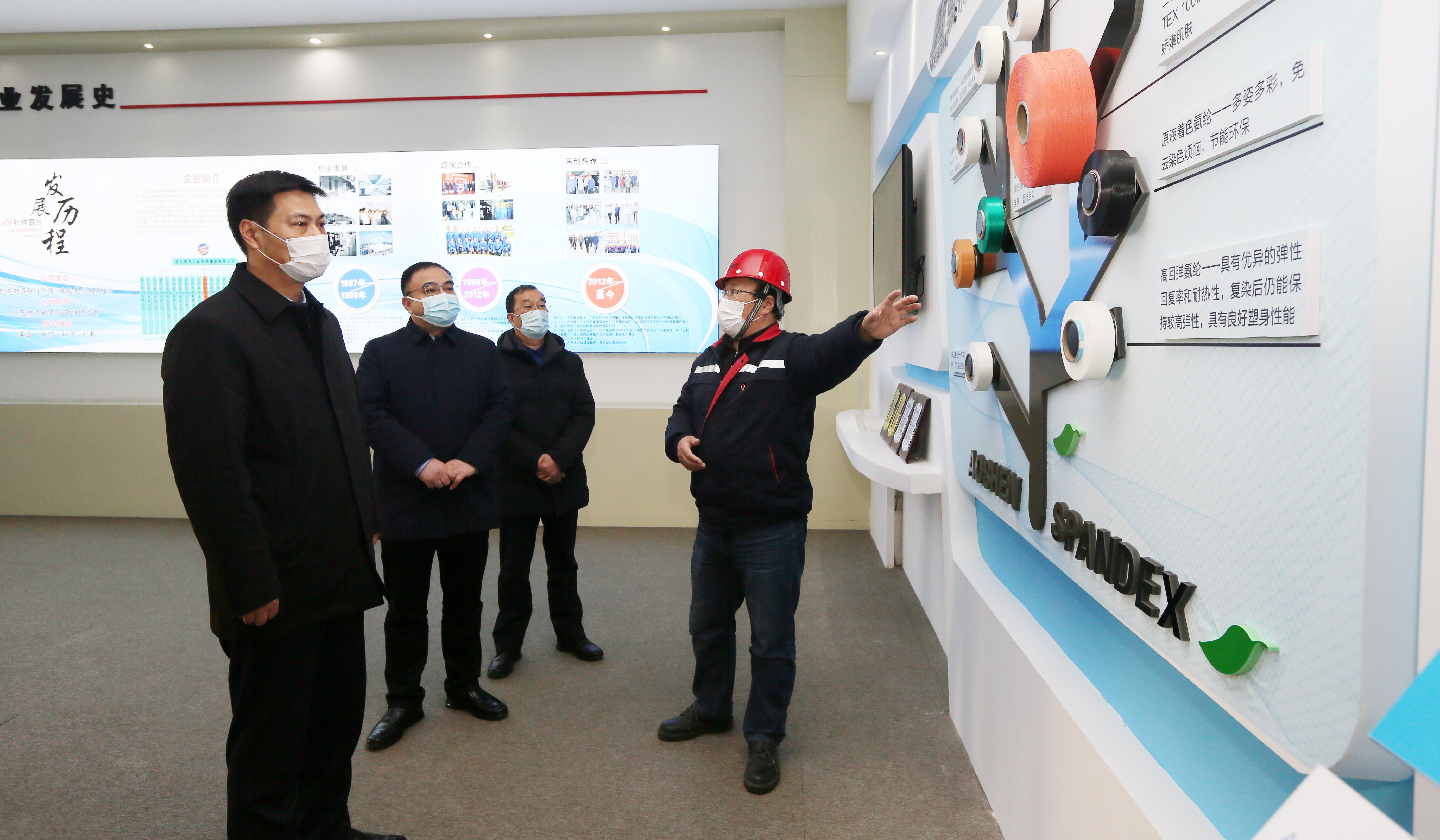 魏愛春一行先后走訪了氨綸公司、神特公司,考察了八期生產(chǎn)線、研發(fā)中心等項目,了解了企業(yè)發(fā)展規(guī)模、生產(chǎn)經(jīng)營、發(fā)展愿景、產(chǎn)品研發(fā)、科技創(chuàng)新等方面情況。