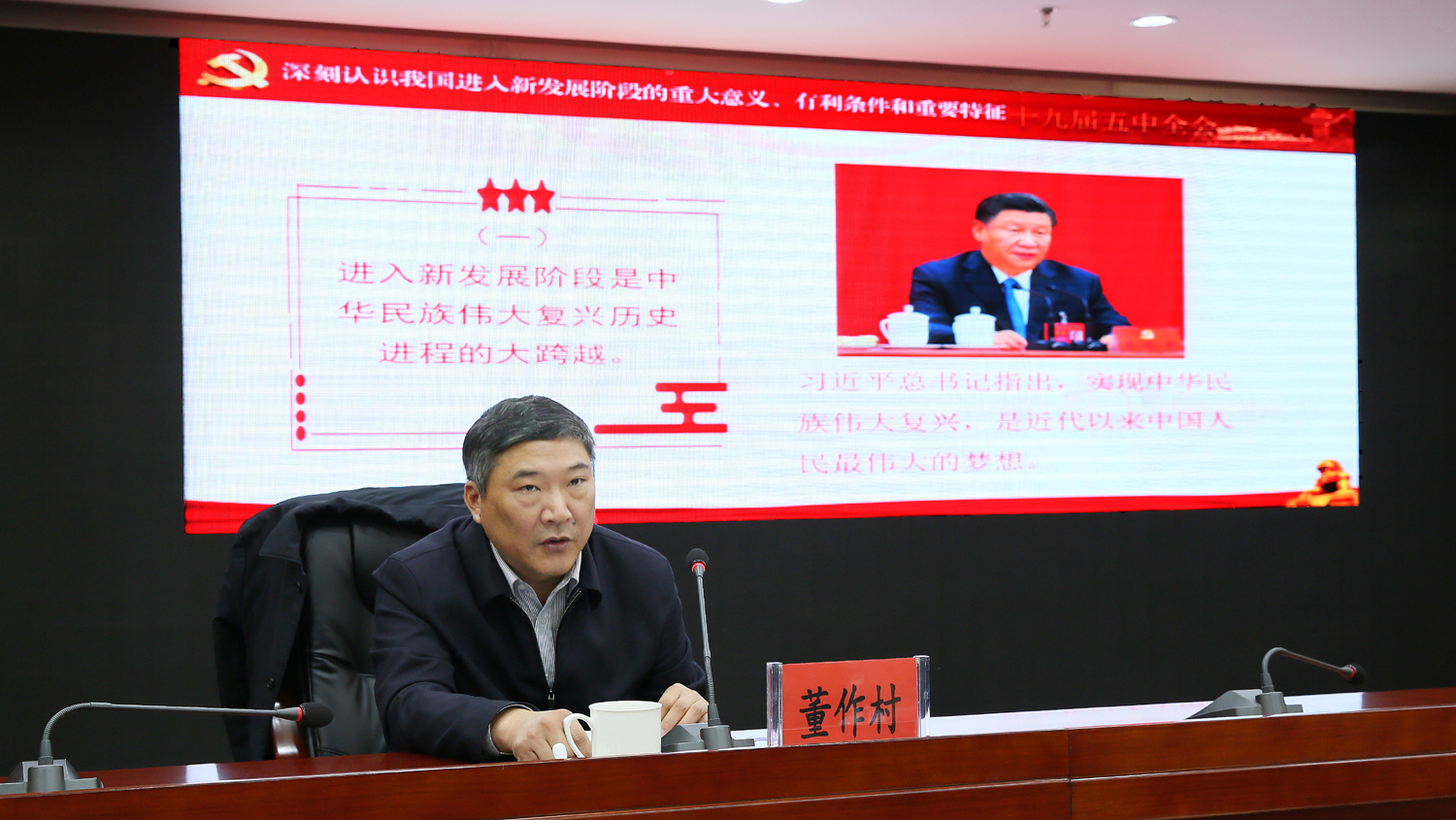董作村緊緊圍繞黨的十九屆五中全會精神,從深刻認識我國進入新發(fā)展階段的重大意義、有利條件和重要特征,準確把握2035年遠景目標和“十四五”時期我國發(fā)展的指導方針、主要目標、重要任務,牢牢把握構建新發(fā)展格局的戰(zhàn)略構想和重要著力點,堅持黨的全面領導、動員各方面力量為實現“十四五”規(guī)劃和2035年遠景目標而團結奮斗等方面,作了系統(tǒng)闡釋和深入解讀。