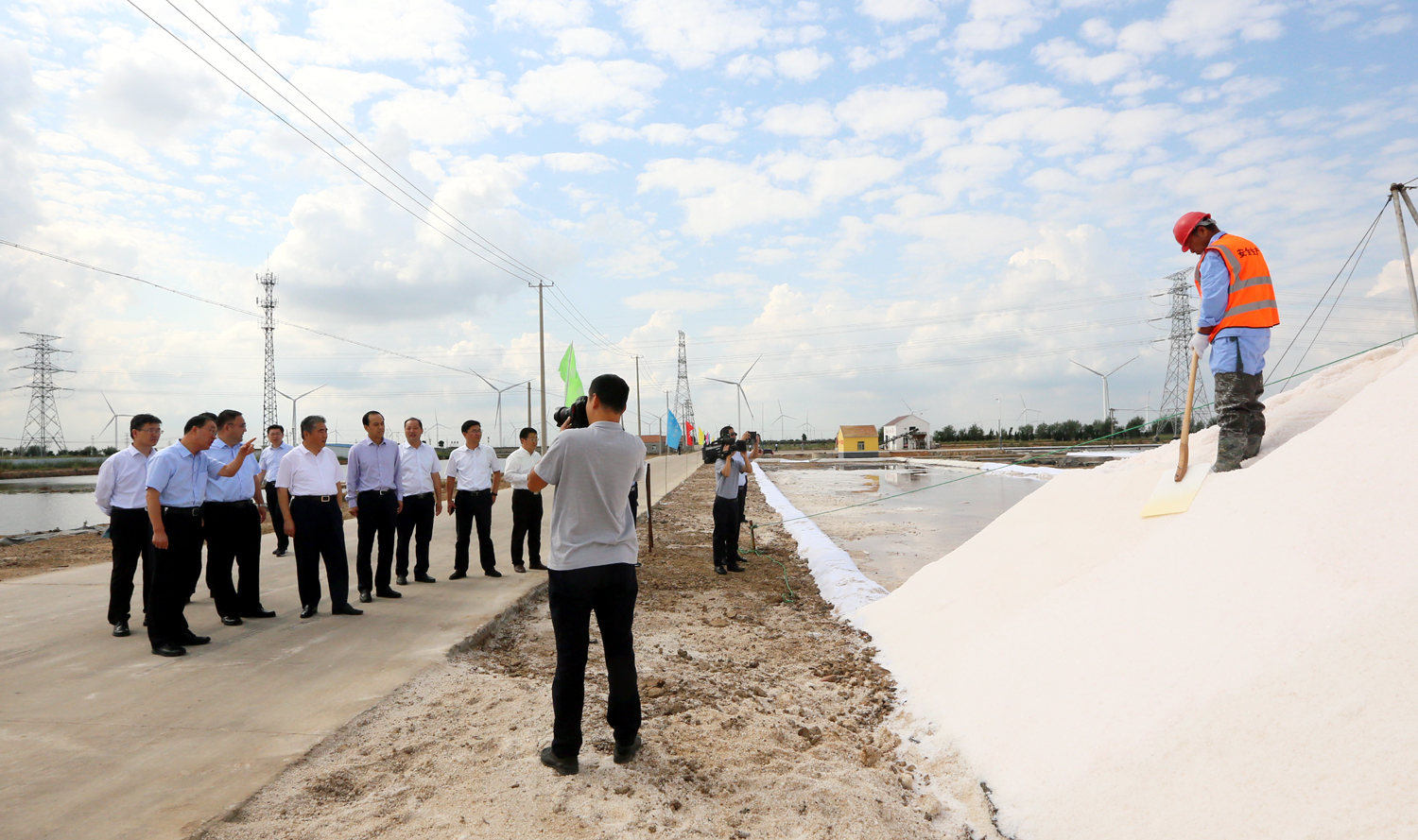 秋高氣爽,粉色鹽池美如畫。在日曬制鹽扒鹽現(xiàn)場,項(xiàng)雪龍仔細(xì)聽取了制鹽工藝流程和鹽業(yè)生產(chǎn)經(jīng)營等情況。實(shí)地察看日曬在池鹽集中結(jié)晶區(qū)、機(jī)械化扒鹽生產(chǎn)現(xiàn)場,充分肯定了鹽業(yè)生產(chǎn)通過創(chuàng)新生產(chǎn)工藝、加強(qiáng)質(zhì)量管控取得的發(fā)展成效。并指出,鹽在生產(chǎn)生活中應(yīng)用十分廣泛,隨著人民生活水平的不斷提高,市民對高品質(zhì)鹽的需求越來越旺盛,制鹽產(chǎn)業(yè)發(fā)展前景廣闊。要堅(jiān)持以市場為導(dǎo)向,加大技術(shù)研發(fā),加快產(chǎn)品升級,不斷擴(kuò)大中高端產(chǎn)品供給,推動實(shí)現(xiàn)質(zhì)量更高、效益更好、競爭力更強(qiáng)的發(fā)展。