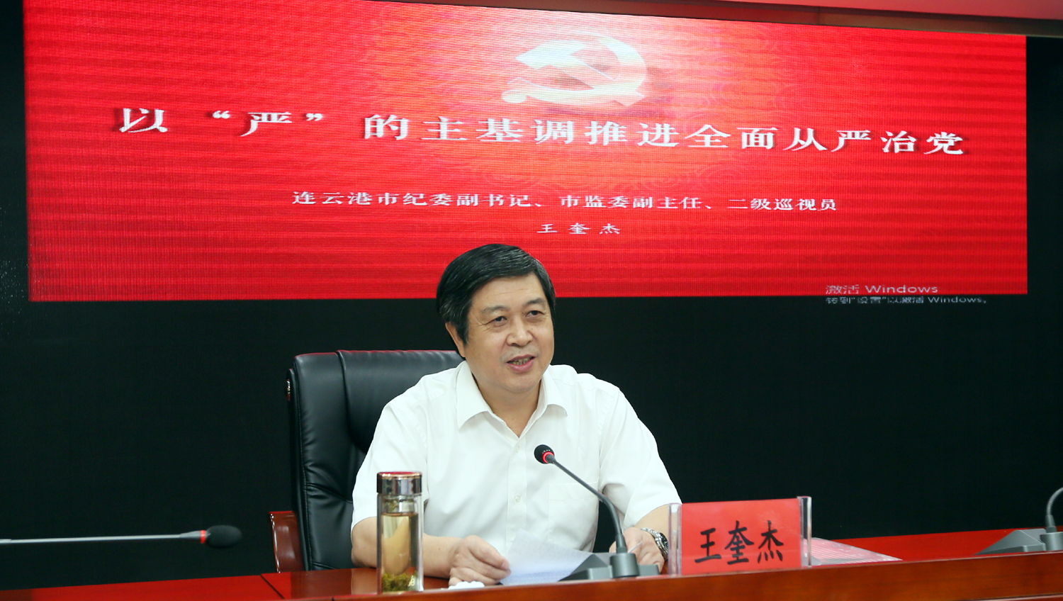 王奎杰?chē)@“以‘嚴(yán)’的主基調(diào)推進(jìn)全面從嚴(yán)治黨”主題,從深刻認(rèn)識(shí)全面從嚴(yán)治黨的歷史性成就、準(zhǔn)確把握全面從嚴(yán)治黨的形勢(shì)任務(wù)、以“嚴(yán)”的主基調(diào)推進(jìn)全面從嚴(yán)治黨三個(gè)方面作了深入淺出的專題輔導(dǎo)報(bào)告。