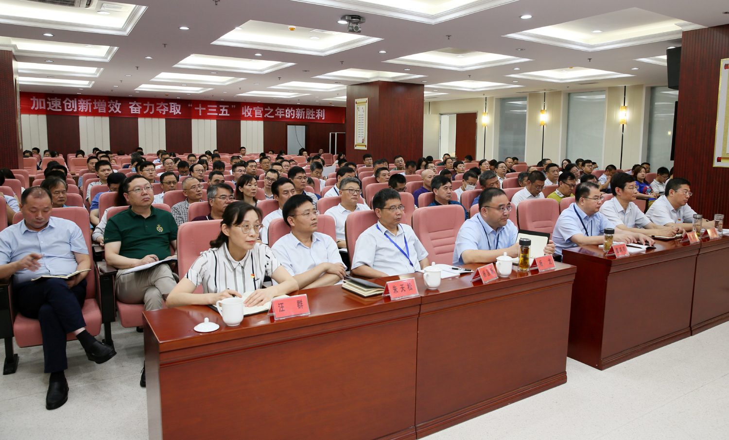 集團(tuán)公司領(lǐng)導(dǎo)班子成員,各權(quán)屬單位領(lǐng)導(dǎo)班子成員、黨群部門(mén)負(fù)責(zé)人以及集團(tuán)總部全體管理人員共200余人聆聽(tīng)報(bào)告。