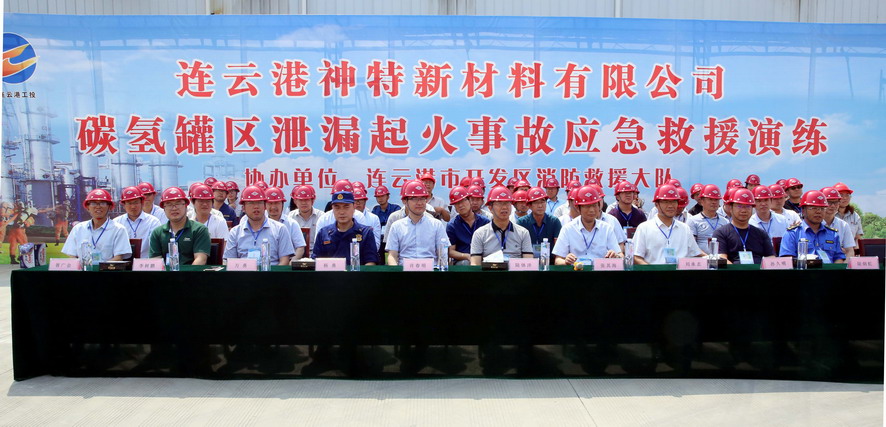 正值全國“安全生產月”之際, 6月19日上午,集團公司在神特新材料公司針對重要危險源乙類碳氫罐區(qū)舉行安全應急綜合演練。市國資委副主任陸體洋,集團公司副總經理張其海、工會主席劉承志,市開發(fā)區(qū)應急管理局局長許春明觀摩應急救援演練。