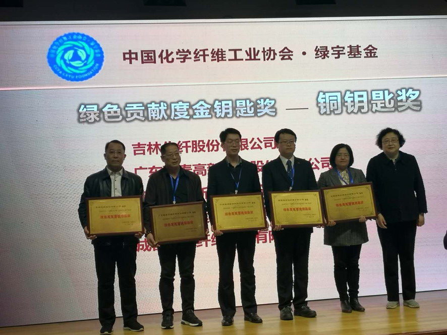 3月11日—13日,集團(tuán)公司總經(jīng)理胡建明、副總經(jīng)理王士華等一行先后參加了中國化纖協(xié)會(huì)六屆五次理事會(huì)和2019中國國際紡織紗線展。江蘇奧神新材料股份有限公司榮獲2019年度“中國化學(xué)纖維工業(yè)協(xié)會(huì)?綠宇基金”綠色貢獻(xiàn)度銅鑰匙獎(jiǎng)。