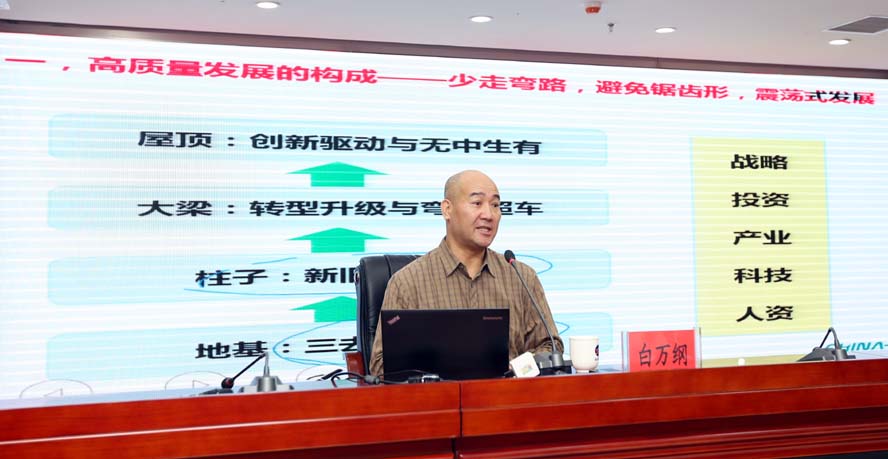 本次培訓(xùn)班邀請上海華彩咨詢集團總裁白萬綱博士、副總裁江斐圍繞“高質(zhì)量發(fā)展導(dǎo)向下的企業(yè)改革與企業(yè)管理”、“新常態(tài)背景下的集團型企業(yè)的資本運作”作了專題輔導(dǎo)培訓(xùn)。兩位專家學(xué)者結(jié)合工投集團實際,理論與實踐相結(jié)合,運用大量翔實的數(shù)據(jù)和實例,祥細(xì)闡述和解讀了在高質(zhì)量和新常態(tài)的發(fā)展大勢下,國有企業(yè)跨越發(fā)展與改革管理、資本運作三者之間的緊密聯(lián)系,主題鮮明、內(nèi)涵豐富,具有很強的針對性、前瞻性和指導(dǎo)性。