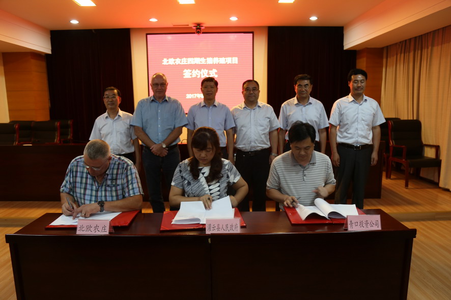 8月7日下午,北歐農(nóng)莊四期生豬養(yǎng)殖項目簽約儀式在灌云縣行政中心舉行。集團公司領導楊龍、胡建明、陳如軍,灌云縣領導朱興波、王慶嘉、張凌云,丹育公司董事勞倫斯·桑德高,連云港北歐農(nóng)莊生豬養(yǎng)殖有限公司首席執(zhí)行官楊林柏等出席簽約儀式。
