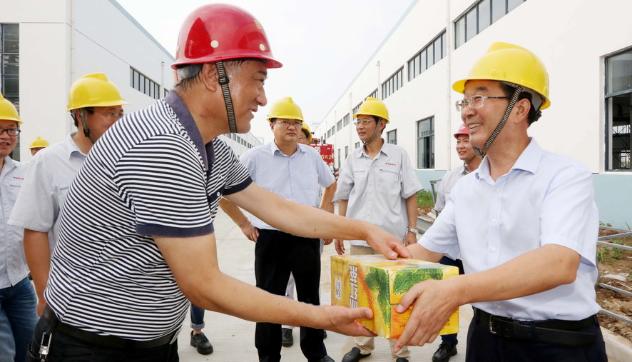 連日來,驕陽似火,酷暑難當(dāng)。7月28日,集團(tuán)公司楊龍、胡建明、楊國新、戴鴻鳴、匡友本、陳如軍等領(lǐng)導(dǎo)分赴基層一線,進(jìn)車間、入工地、到灘(田)頭,慰問在高溫下堅(jiān)守崗位的一線員工,送去冰紅茶、綠豆等防暑降溫品,在炎炎夏日中將“清涼”送到職工心坎上。