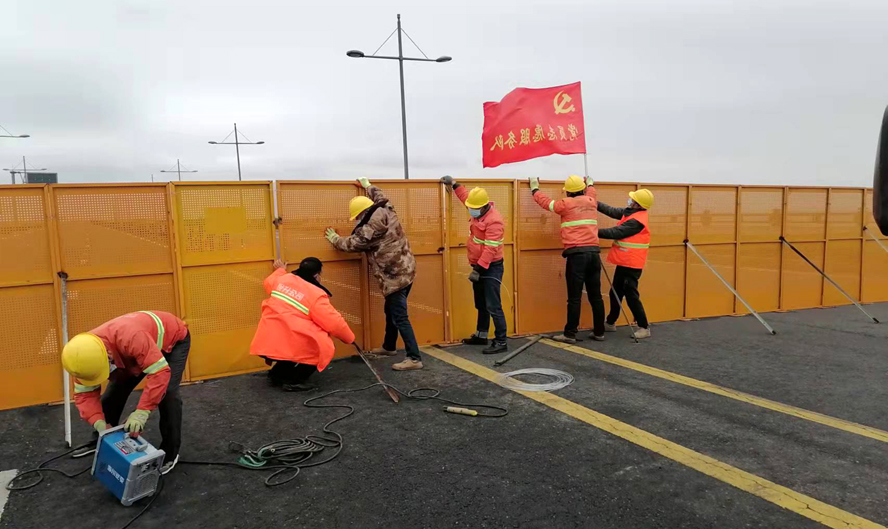 安裝加固步步到位?!敖裉焓姓趰?/span>9人。”17號(hào)一大早,市政經(jīng)理高峰就準(zhǔn)時(shí)在公司防疫管理群里報(bào)告人數(shù)??墒谴藭r(shí)這崗位卻設(shè)在狂風(fēng)凌洌、無(wú)遮無(wú)擋的海濱大道上。肆虐的狂風(fēng)吹倒了許多防護(hù)欄,從清晨開(kāi)始,高峰就帶領(lǐng)市政突擊隊(duì)沿著合作路、海濱大道等八個(gè)路段一路巡查一路搶修。面對(duì)狼藉的現(xiàn)場(chǎng),高峰沉著冷靜,有條不紊地帶著大家用力地扶起扶正,再加樁固定。施工現(xiàn)場(chǎng),風(fēng)聲伴著加油的號(hào)聲、汗水伴著有節(jié)奏地敲擊聲,這場(chǎng)景,不正是一幅感人的“錚錚鐵骨鑄堅(jiān)壁”的動(dòng)人畫(huà)卷嗎?自3月5日疫情襲來(lái),市政突擊隊(duì)就馬不停蹄地奮戰(zhàn)在新區(qū)的各個(gè)角落。施工期間,高峰他們白天黑夜地連軸轉(zhuǎn),中午來(lái)不及休息便蹲在路邊吃快餐,為了搶工期,有時(shí)竟加班到深夜12點(diǎn)。短短的10天,他們?cè)谧龊闷渌姓?wù)工作的同時(shí),已經(jīng)先后安裝完成了2000多米的道路圍擋,讓病疫“無(wú)路可逃”。