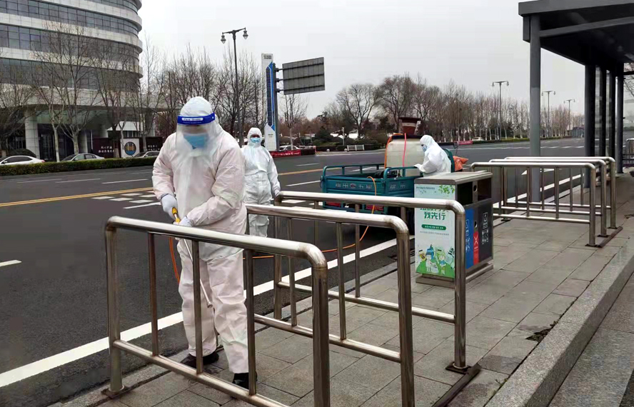 清潔消殺環(huán)環(huán)相扣。3月16日上午11時(shí),悅升總部門(mén)前水霧彌漫,多臺(tái)作業(yè)歸來(lái)的車(chē)輛正有序地進(jìn)行著消殺清理。據(jù)公司徐總介紹,自疫情發(fā)生以來(lái),公司積極配合新區(qū)疫情防控部署,全方位構(gòu)筑防疫聯(lián)控網(wǎng)絡(luò)。每天7點(diǎn)公司的消殺車(chē)就開(kāi)始對(duì)徐圩新區(qū)、鄰里中心、居民小區(qū)等65萬(wàn)平方米的轄區(qū)進(jìn)行大規(guī)模的消殺作業(yè)。公司在做好轄區(qū)正常的人工保潔工作同時(shí),每天出動(dòng)大型作業(yè)車(chē)輛4個(gè)臺(tái)班,清掃路面長(zhǎng)達(dá)6個(gè)小時(shí),垃圾清運(yùn)班每日清運(yùn)各類(lèi)垃圾達(dá)10余噸。下午3點(diǎn)半,狂風(fēng)伴著寒流,市勞模龔飛正帶領(lǐng)班組成員對(duì)徐圩核心區(qū)域內(nèi)的公交站臺(tái)、果皮箱進(jìn)行全面清潔消殺,清掏、裝袋、搬運(yùn)、消毒,不斷重復(fù)的操作流程既繁瑣又勞累,寒風(fēng)中,他們的防護(hù)服早已濕透,但卻無(wú)人顧及。