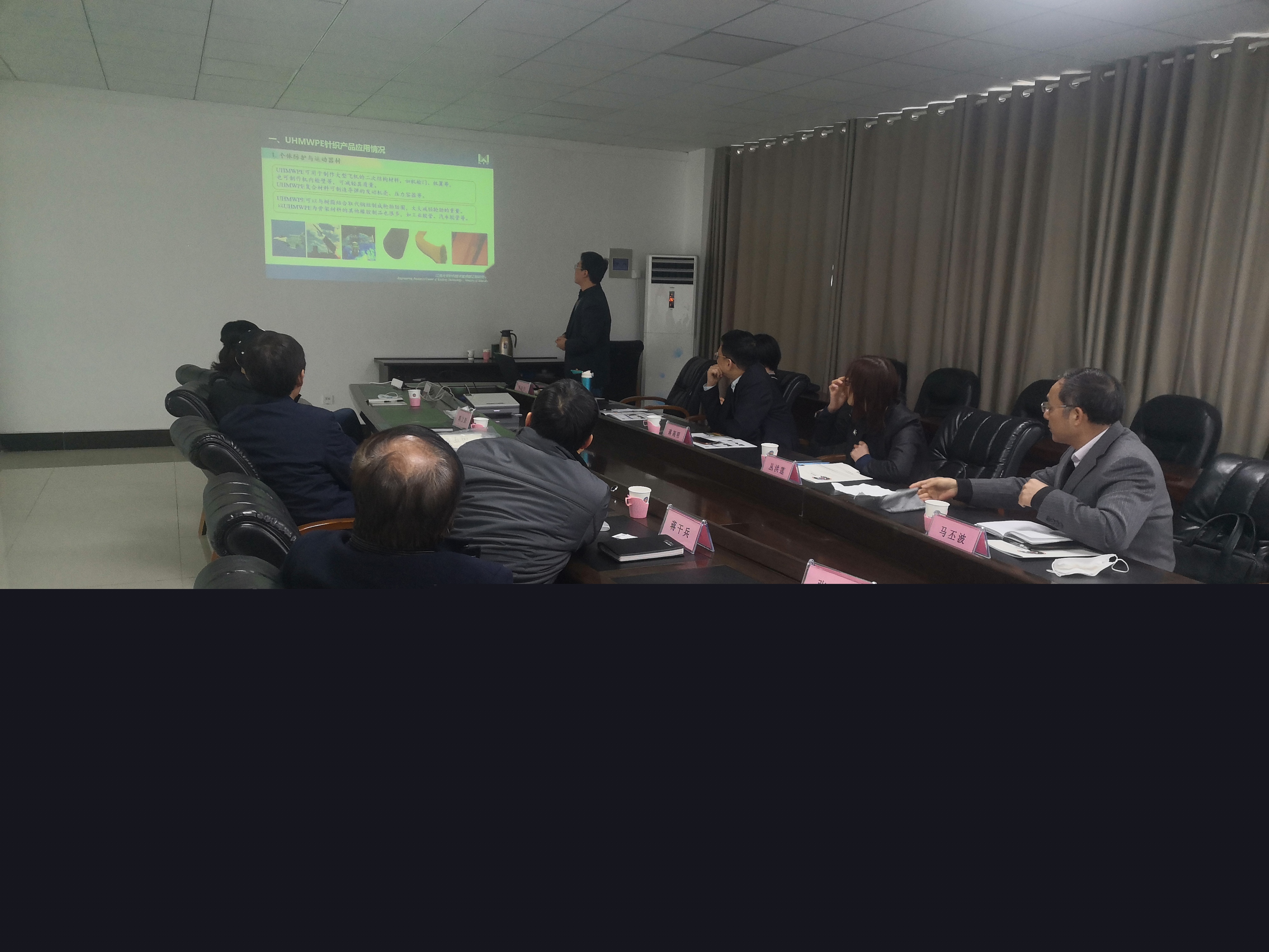 江南大學(xué)蔣高明教授等一行參觀了神特公司產(chǎn)品展示廳,在隨后的交流會(huì)上,馬丕波教授作了高強(qiáng)高模聚乙烯纖維針織產(chǎn)品開發(fā)報(bào)告,雙方就此進(jìn)行了深入交流。