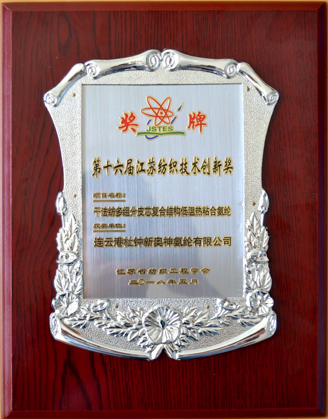 5月30日,江蘇省紡織工程學會第十一屆會員代表大會暨“中孚達杯”紡織學術(shù)年會在江蘇南京順利舉行。我公司“干法紡多組分皮芯復合結(jié)構(gòu)低溫熱粘合氨綸”獲得第十六屆江蘇省紡織技術(shù)創(chuàng)新獎,并在會議現(xiàn)場以展板形式隆重展出。