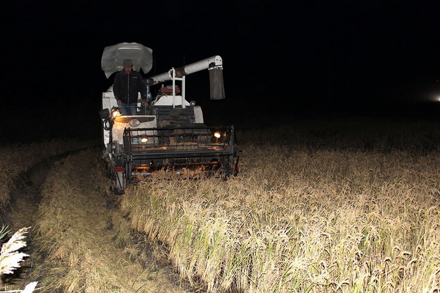 11月9日夜七時(shí)許,青口投資公司大新農(nóng)場(chǎng),工會(huì)副主席王士超作為巡查組成員,正在組織二分場(chǎng)趙華勇條田水稻種植戶(hù)在搶收水稻。