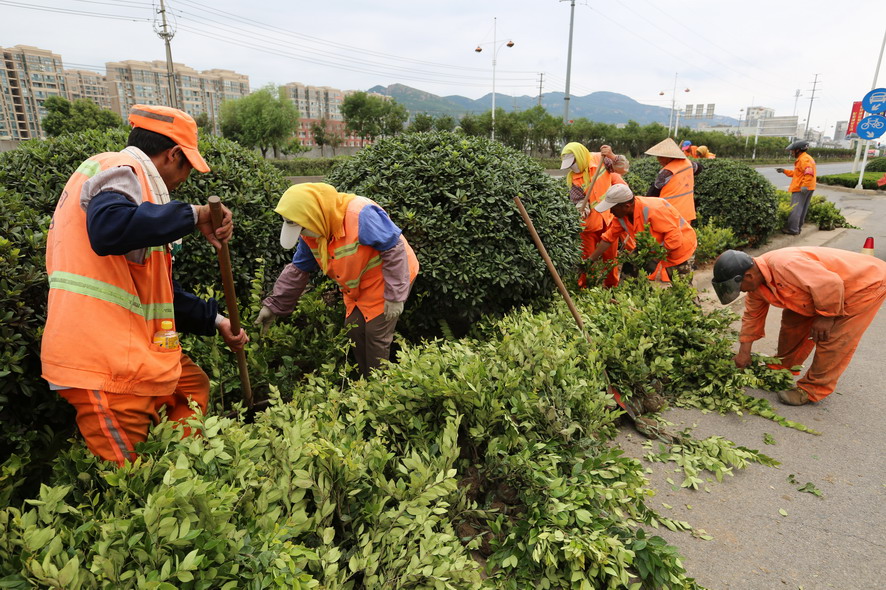 立秋以來,人們沒有感受到時節(jié)變換帶來的爽爽涼意,每天30多度的高溫高濕的天氣依舊籠罩港城,“秋老虎”似乎也不愿歸去,依然揮發(fā)著“余威”。在開發(fā)區(qū)臨港產(chǎn)業(yè)園區(qū),華茂公司廣大職工始終堅守在創(chuàng)衛(wèi)工作的前沿,迎高溫、斗酷暑,苦戰(zhàn)“秋老虎”,在補(bǔ)植苗木、市政維修、環(huán)衛(wèi)整治等新一輪創(chuàng)衛(wèi)突擊攻堅戰(zhàn)中,加班加點,揮汗如雨,奮力爭先,勞動熱情空前高漲。