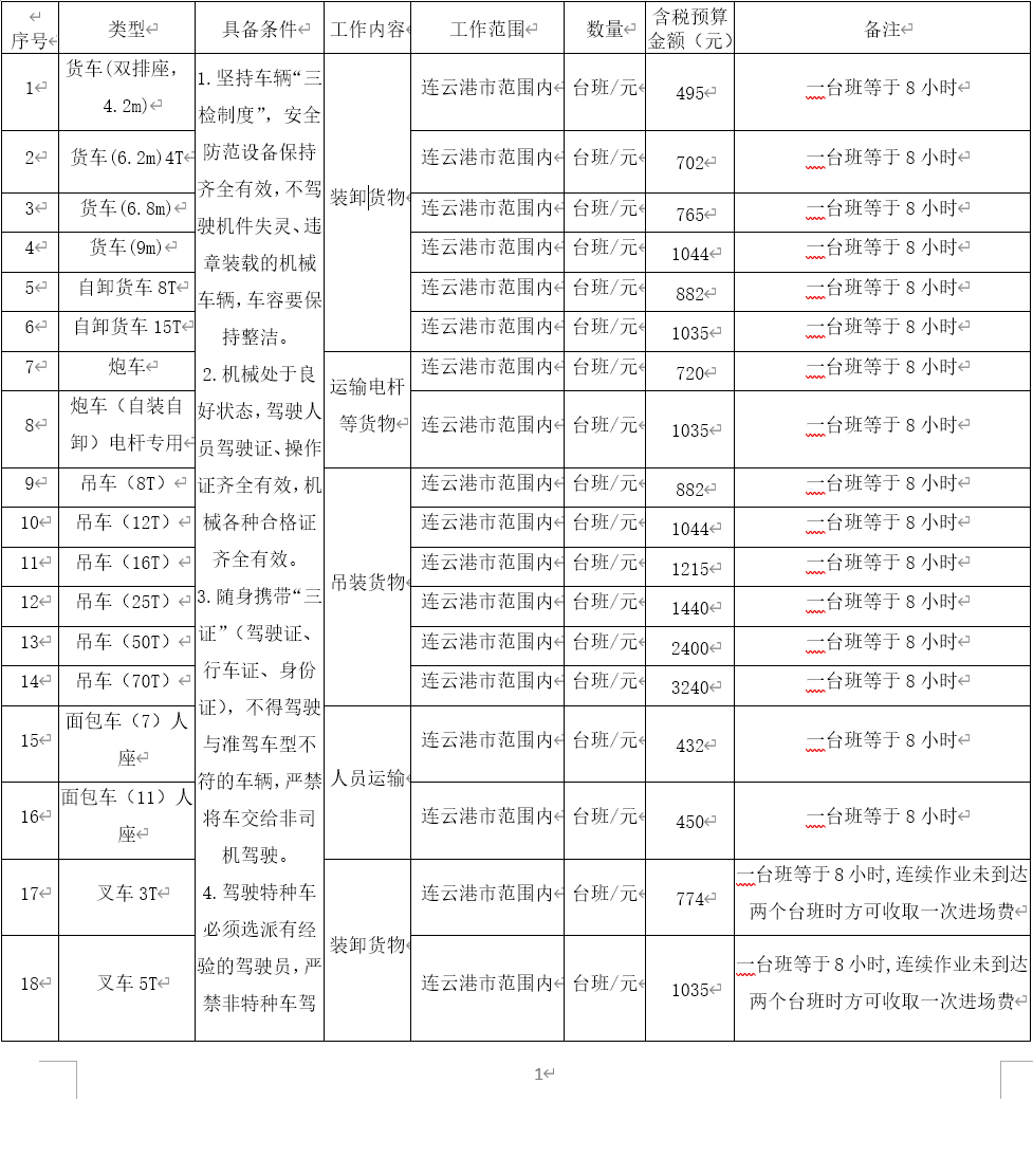 2.采購內(nèi)容:連云港工投集團供電工程分公司機械、車輛租賃