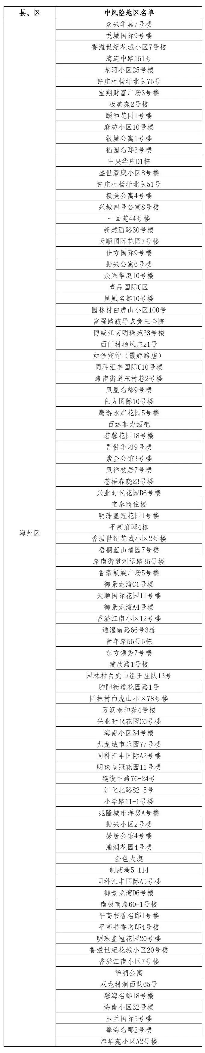 據(jù)國(guó)務(wù)院聯(lián)防聯(lián)控機(jī)制有關(guān)規(guī)定,經(jīng)市指揮部研究決定,自發(fā)布之日起,對(duì)我市部分區(qū)域疫情風(fēng)險(xiǎn)等級(jí)進(jìn)行調(diào)整:開發(fā)區(qū)久和國(guó)際新城二期33號(hào)樓由中風(fēng)險(xiǎn)地區(qū)調(diào)整為低風(fēng)險(xiǎn)地區(qū)。其他地區(qū)風(fēng)險(xiǎn)等級(jí)不變。調(diào)整后全市現(xiàn)有90個(gè)中風(fēng)險(xiǎn)地區(qū)。 連云港市中風(fēng)險(xiǎn)地區(qū)(90個(gè))
