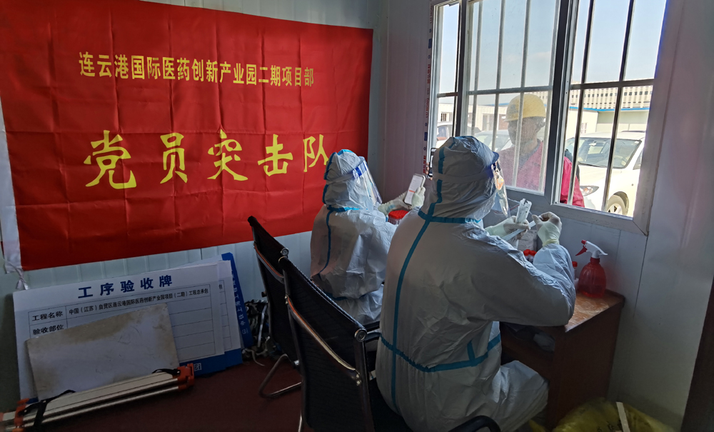 “請大家保持一米線,戴好口罩,有序參與核酸檢測,謝謝配合!”來自市級重大項目連云港國際醫(yī)藥創(chuàng)新產(chǎn)業(yè)園二期項目黨員突擊隊的成員席時棟、陳家輝喊道。據(jù)悉,該項目目前按照上級相關(guān)規(guī)定,實行閉環(huán)管理,做好相關(guān)疫情防控工作。“我們項目部嚴(yán)格按照市、開發(fā)區(qū)相關(guān)規(guī)定,做好閉環(huán)施工,疫情防控、項目建設(shè)兩手抓、兩手硬。”來自集團(tuán)棚戶區(qū)改造裕源三期項目負(fù)責(zé)人青年黨員徐震說道。