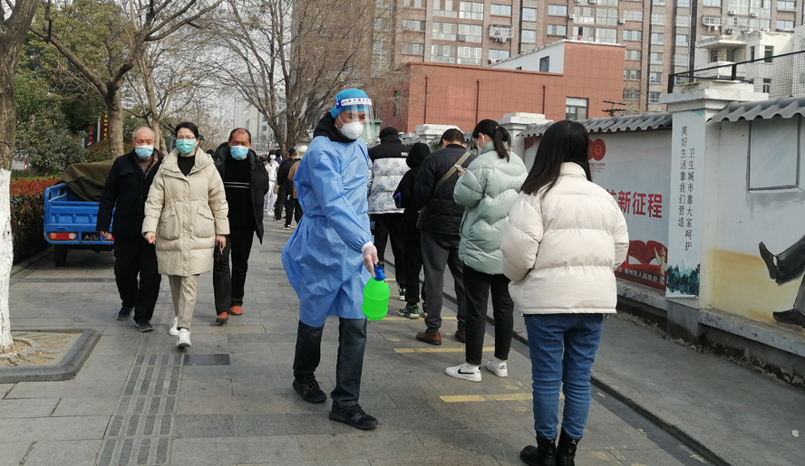 他們是知險(xiǎn)而為的逆行者。疫情發(fā)生以來,投資公司各級(jí)黨組織深入推進(jìn)“黨旗飄一線、戰(zhàn)疫沖在前”黨內(nèi)專題教育實(shí)踐活動(dòng),涌現(xiàn)出王同林、汪洋、楊波、丁樂東等一批主動(dòng)請(qǐng)戰(zhàn)上“疫”線的志愿者,成為港城“疫”線那一抹“天使白、志愿藍(lán)”風(fēng)景里熠熠生輝的“徐圩點(diǎn)”。他們受居家隔離因素制約,就近參加街道社區(qū)的疫情防控工作,協(xié)助社區(qū)全方位開展核酸檢測、電話查訪、信息錄入、樓戶排查、場所消毒、巡邏宣傳等志愿服務(wù)工作。他們中間既有夫妻齊上陣,也有父子同站崗;既有在崗黨員,也有二線黨員。家住興業(yè)時(shí)代小區(qū)的侍作華、趙啟英夫婦,自參加防疫志愿行動(dòng)以來,每天負(fù)責(zé)300份居民物資送貨任務(wù),先是由妻子搬運(yùn)到樓下,再由丈夫挨家送上門。相對(duì)于無電梯的多層樓,身穿“大白”的侍作華每天樓梯來回?cái)?shù)十趟,即使是跑酸腿腳、濕透衣服、干了嗓子,也沒有遞減他堅(jiān)持就是勝利的戰(zhàn)“疫”信心。作為工投集團(tuán)防疫志愿服務(wù)隊(duì)隊(duì)員的孫海波,在派駐同科小區(qū)的日子里,每天身穿密不透風(fēng)的“大白”防護(hù)服,一穿就是十幾個(gè)小時(shí)不下身,即便是汗水浸皺了雙手、臉頰勒出了溝痕,仍然馬不停蹄忙著安排人員做核酸、上門排查健康碼情況,近距離接觸黃、紅碼人員,和同事先后完成小區(qū)1000余戶家庭兩次排查和35000人次核酸檢測人員身份信息采集工作。被社區(qū)稱為“志愿書記”的胡可志,從戰(zhàn)“疫”動(dòng)員令發(fā)出的當(dāng)天,就志愿參加平山社區(qū)的防疫工作。一人多角色的他,既是秩序員,也是消毒員;既是喊話員,也是宣傳員;既是居民健康碼的驗(yàn)證員,也是“一米線”距離的監(jiān)督員。在連續(xù)多天的志愿服務(wù)中,也讓社區(qū)人員徹底認(rèn)可他這位不錯(cuò)的“組織員”。悅升公司居家隔離的青年員工潘浩聽說單位值守員工王亮因突發(fā)哮喘舊疾,及時(shí)通過社區(qū)報(bào)備、藥房購藥、卡口傳藥等環(huán)節(jié)把應(yīng)急藥物轉(zhuǎn)送到王亮手中,成為架設(shè)“愛心通道”的有心人。