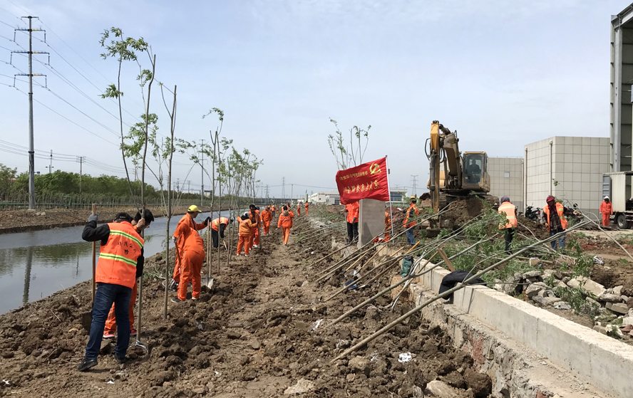 有一群人,工作起來不分晝夜,干起活來不知疲倦,無畏困苦,任勞任怨。他們,就是擁有“鐵軍風(fēng)采”的“華茂人”;有一種精神,敢為人先,勇于拼搏,艱苦奮斗,敬業(yè)奉獻。這就是“市級重大先進典型”的“華茂精神”。 4月27日,鮮紅的黨旗在開發(fā)區(qū)開泰河的上空高高飄揚,黑褐色的土地上,處處綻放著“橘黃色的花朵”,那是身著工服的“華茂人”忘我忙碌的身影。為確保開泰河綠化景觀工程項目按期完工,華茂機關(guān)全體職工、分公司部分職工80余人,主動放棄休息日,加入“工程大軍”中,高效助力開泰河綠化工程在既定工期內(nèi)順利完工,為創(chuàng)建文明城市增添一份靚麗的色彩。開泰河邊人頭攢動,大家擼起衣袖,拿起鐵鍬,挖坑、運苗、栽苗、培土,相互配合,干勁十足。汗水混合著沙土沾滿了頭上、臉上、手套、衣服和鞋子上,卻沒有一人叫苦叫累。經(jīng)過大家奮力趕工,一天時間,一顆顆大樹苗筆直、整齊劃一的“站立”在開泰河的兩岸,放眼望去,黑褐色的土地上點點綠意,綻放出了片片生機。 微風(fēng)輕拂新栽樹,綠綻指頭滿眼春。新時代的“華茂人”將始終保持著忘我的精神狀態(tài),積極向上的工作激情,奮戰(zhàn)在園區(qū)生態(tài)環(huán)境建設(shè)及“創(chuàng)文”工作最前沿,不斷彰顯新時代的“華茂精神”,堅定的奔跑在加速度發(fā)展的康莊大道上。 (王 芬)