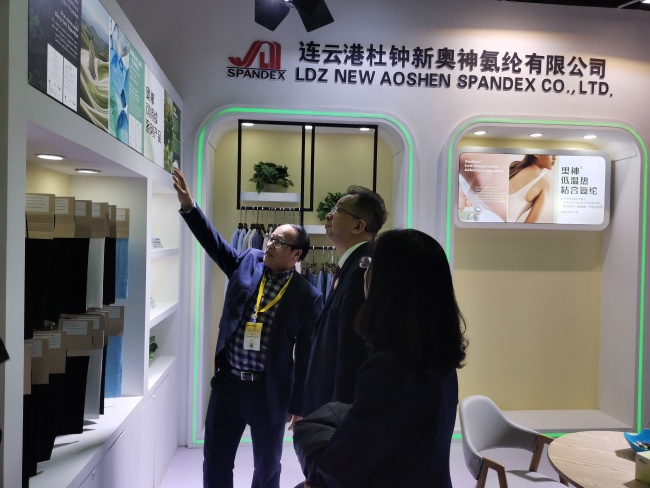 3月6日,連云港杜鐘新奧神氨綸有限公司應(yīng)邀參加2024中國國際紡織紗線(春夏)展覽會(huì)。公司攜三款低碳環(huán)保新產(chǎn)品閃亮登場,與本次紗線展“綠色、循環(huán)、低碳”的理念完美契合。工信部消費(fèi)品工業(yè)司司長何亞瓊一行親臨公司展位指導(dǎo)交流,中國化學(xué)纖維工業(yè)協(xié)會(huì)副秘書長靳高嶺等領(lǐng)導(dǎo)陪同。