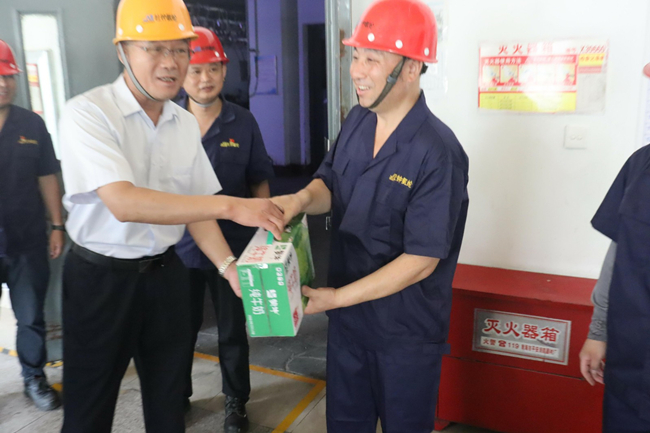 7月17,集團(tuán)公司黨委副書(shū)記、工會(huì)主席戴鴻鳴和副總經(jīng)理劉承志來(lái)我司走訪慰問(wèn)高溫下奮戰(zhàn)在一線崗位的廣大職工,送去防暑降溫物品和親切慰問(wèn)。