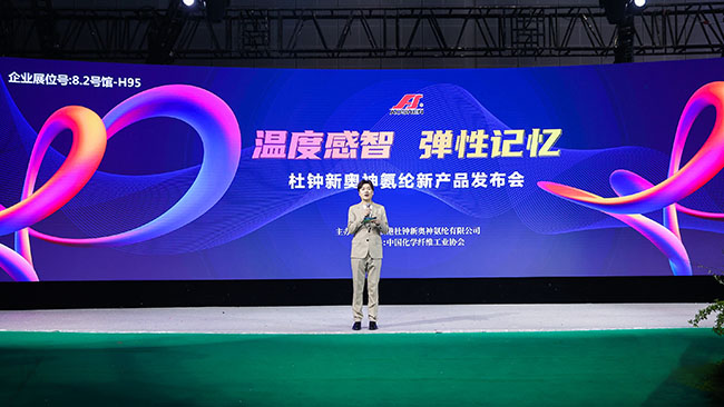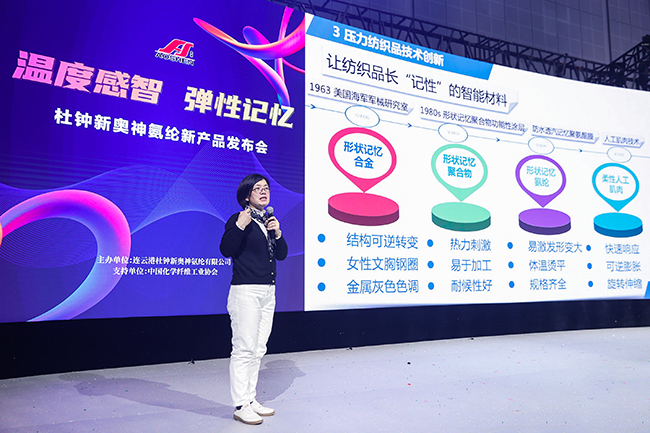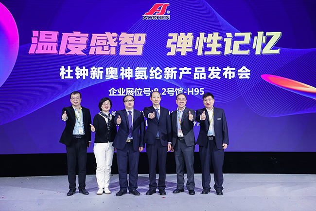 3月29日,連云港杜鐘新奧神氨綸有限公司“溫度感智,彈性記憶——杜鐘新奧神氨綸新產(chǎn)品發(fā)布會在國家會展中心(上海)精彩呈現(xiàn)。中國化學(xué)纖維工業(yè)協(xié)會會長陳新偉、中國化學(xué)纖維工業(yè)協(xié)會總經(jīng)濟師、氨綸分會常務(wù)副會長李增俊、江南大學(xué)教育部針織技術(shù)工程研究中心副教授萬愛蘭蒞臨現(xiàn)場,來自產(chǎn)業(yè)鏈的知名面料、服裝企業(yè)200余人參加了本次發(fā)布會,一起分享奧神創(chuàng)新研發(fā)成果,探索氨綸應(yīng)用新方向。