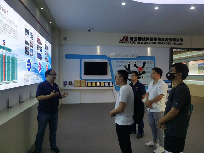24日上午,蘇美達(dá)國(guó)際貿(mào)易有限公司經(jīng)理陳永祥、工程師陳龍及南京工業(yè)大學(xué)教授孫戒、馬燦亮到氨綸公司開(kāi)展技術(shù)交流,總經(jīng)理張斌陪同。