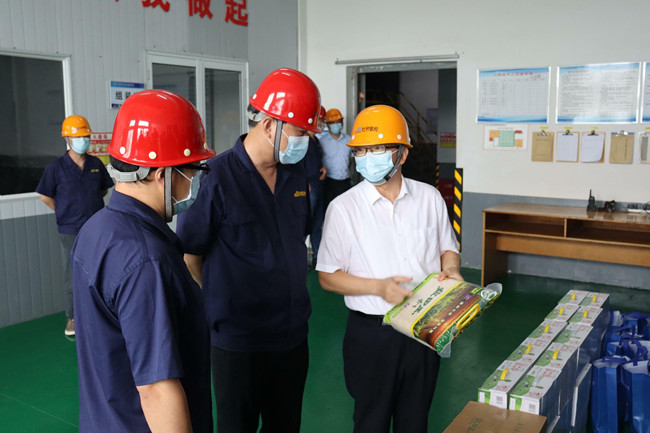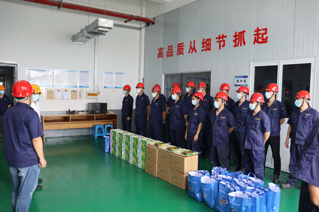 7月19日,集團公司黨委書記、董事長丁銳來杜鐘氨綸公司走訪慰問高溫下奮戰(zhàn)在一線崗位的廣大職工,送去防暑降溫物品和親切慰問。