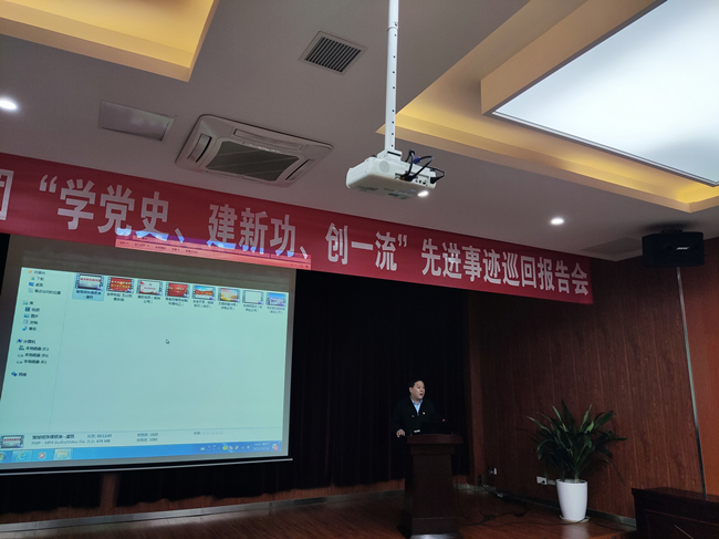 10月14日下午,集團(tuán)公司“學(xué)黨史、建新功、創(chuàng)一流”先進(jìn)事跡巡回報(bào)告宣講團(tuán)在集團(tuán)黨群工作部部長(zhǎng)夏正斌的帶領(lǐng)下,至氨綸公司進(jìn)行巡回宣講,氨綸公司領(lǐng)導(dǎo)班子成員、各單位黨政負(fù)責(zé)人及部分黨員職工代表等50余人一起參加報(bào)告會(huì)。