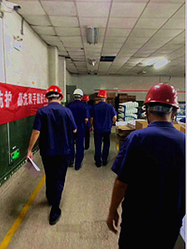 9月16日,由生產(chǎn)副總張華衛(wèi)帶隊,共12人分兩組對生產(chǎn)區(qū)進行安全大檢查,檢查范圍涵蓋公司所有角落。此次檢查采用專業(yè)人員有針對性的專項檢查,每位專項檢查人根據(jù)自已的專業(yè)特長,各負責(zé)一項,檢查內(nèi)容涉及用電安全、現(xiàn)場環(huán)境、機械設(shè)備、勞動保護、消防設(shè)施、作業(yè)安全等。