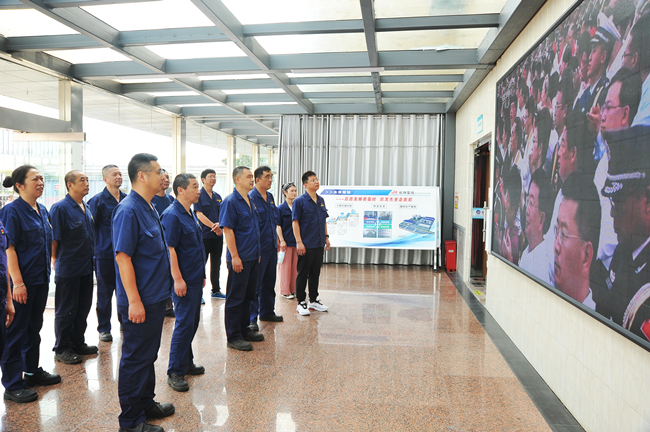 黨員在公司展廳觀看慶祝中國(guó)共產(chǎn)黨成立100周年大會(huì)。