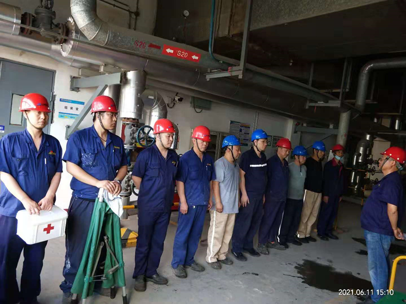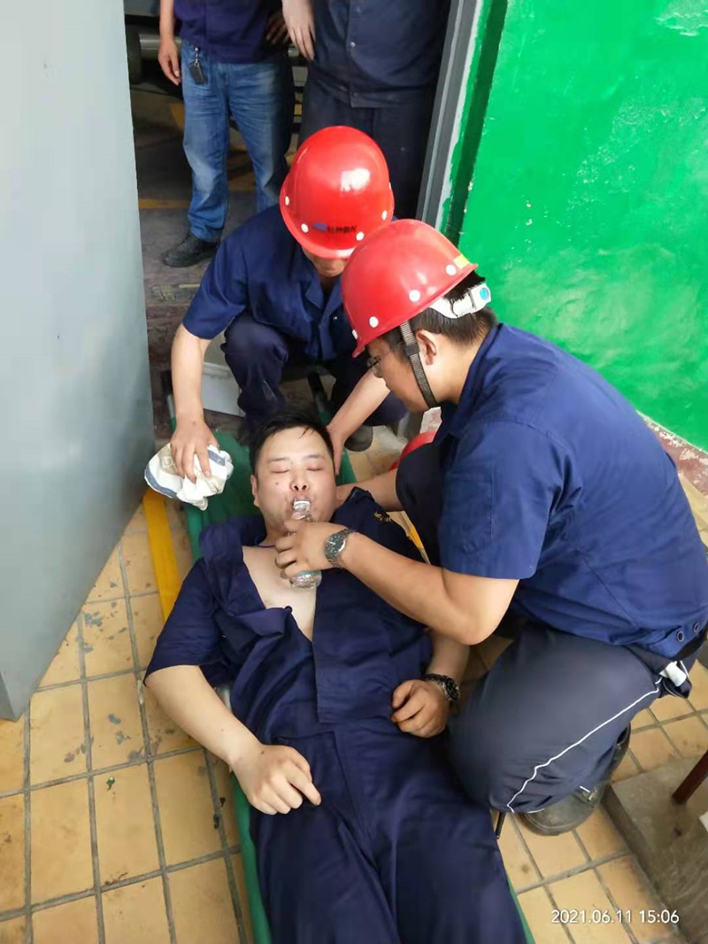 隨著持續(xù)高溫,一線員工中暑風(fēng)險(xiǎn)在逐漸加大,為了防止一線員工有人中暑時(shí),才取什么應(yīng)急辦法,同時(shí)檢驗(yàn)我部職業(yè)危害救援組織反應(yīng)速度、救援能力以及協(xié)同配合、演練救援技能,氨綸公司生產(chǎn)一部于2021年6月11日(15:00)開(kāi)展了夏季“防止中暑應(yīng)急處置演練”,演練隊(duì)伍針對(duì)一名員工發(fā)生高溫中暑危害開(kāi)展應(yīng)急救援演練。最后生產(chǎn)一部部長(zhǎng)張海波針對(duì)本次演練存在不足及改進(jìn)方向做了總結(jié)。本次活動(dòng)共有13余人參與演練,安全部胡文斌參加此次演練。