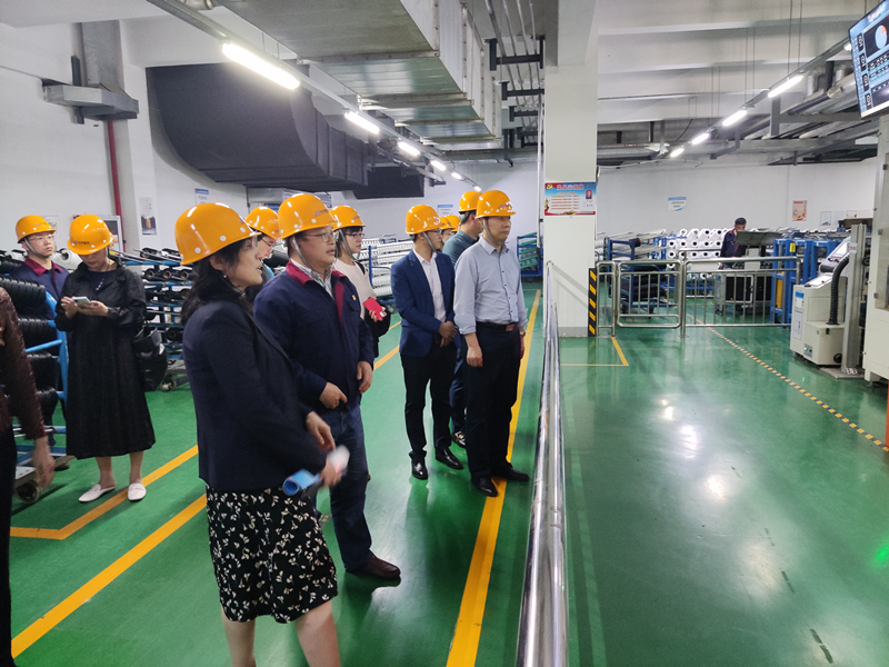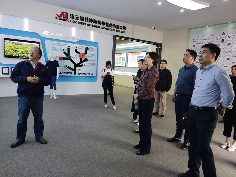 一行人先后參觀了公司展廳、八期生產線、自動化包裝線等。參觀過程中,公司總經理張斌對我公司的發(fā)展歷程,差別化產品、戰(zhàn)略優(yōu)勢、積極開拓營銷渠道,創(chuàng)新運用新媒體傳播方式推進商品銷售等進行了詳細介紹。中國科學院院士朱美芳對我公司低溫熱粘合氨綸、抗菌氨綸、驅蚊氨綸及氨綸生產全流程自動化、智能化生產線等給予了高度評價,朱院士指出氨綸公司要重視自主研發(fā)能力的培養(yǎng)和提高,進一步加大研發(fā)投入,不斷拉長產業(yè)鏈條,提高產品利潤,全面提升企業(yè)核心競爭力。