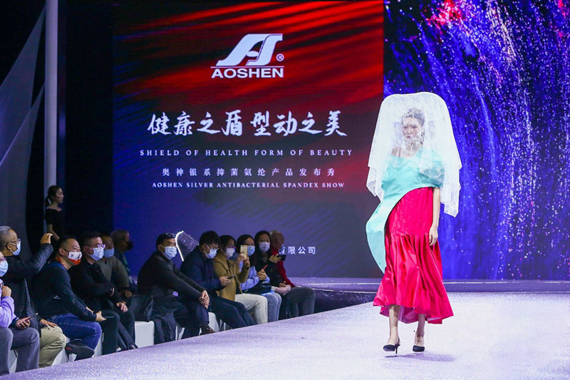 杜鐘新奧神氨綸公司總經(jīng)理張斌向大家介紹了公司的發(fā)展歷程,并隆重推出新產(chǎn)品——銀系抑菌氨綸,指出其在性價(jià)比、環(huán)保、安全等方面獨(dú)特的優(yōu)勢和市場前景。下游客戶代表紅豆童裝、福建東龍針紡分享了使用奧神抑菌、驅(qū)蚊等功能性氨綸產(chǎn)品的經(jīng)驗(yàn)和體會(huì),并表示將與杜新奧神氨綸開展長期的戰(zhàn)略合作。最后,精彩的模特走秀完美演繹了兩家合作公司聯(lián)合推出的最新款的時(shí)裝、童裝及瑜伽類運(yùn)動(dòng)服裝。