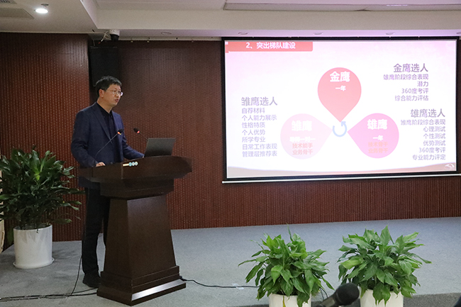 決賽中,10家單位品牌闡述人圍繞背景起因、做法經(jīng)過(guò)、取得成效進(jìn)行了現(xiàn)場(chǎng)宣講,經(jīng)過(guò)激烈角逐,公司黨群工作部部長(zhǎng)陳宏波宣講的《實(shí)施“三鷹計(jì)劃” 激活人才引擎》榮獲三等獎(jiǎng)。