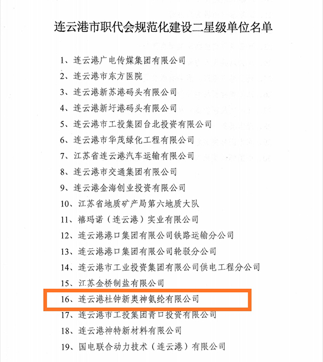 近期,連云港市總工會對全市各級職代會規(guī)范化建設表現突出的企事業(yè)單位進行了表彰,公司榜上有名,獲評市“職代會規(guī)范化建設二星級單位”稱號。