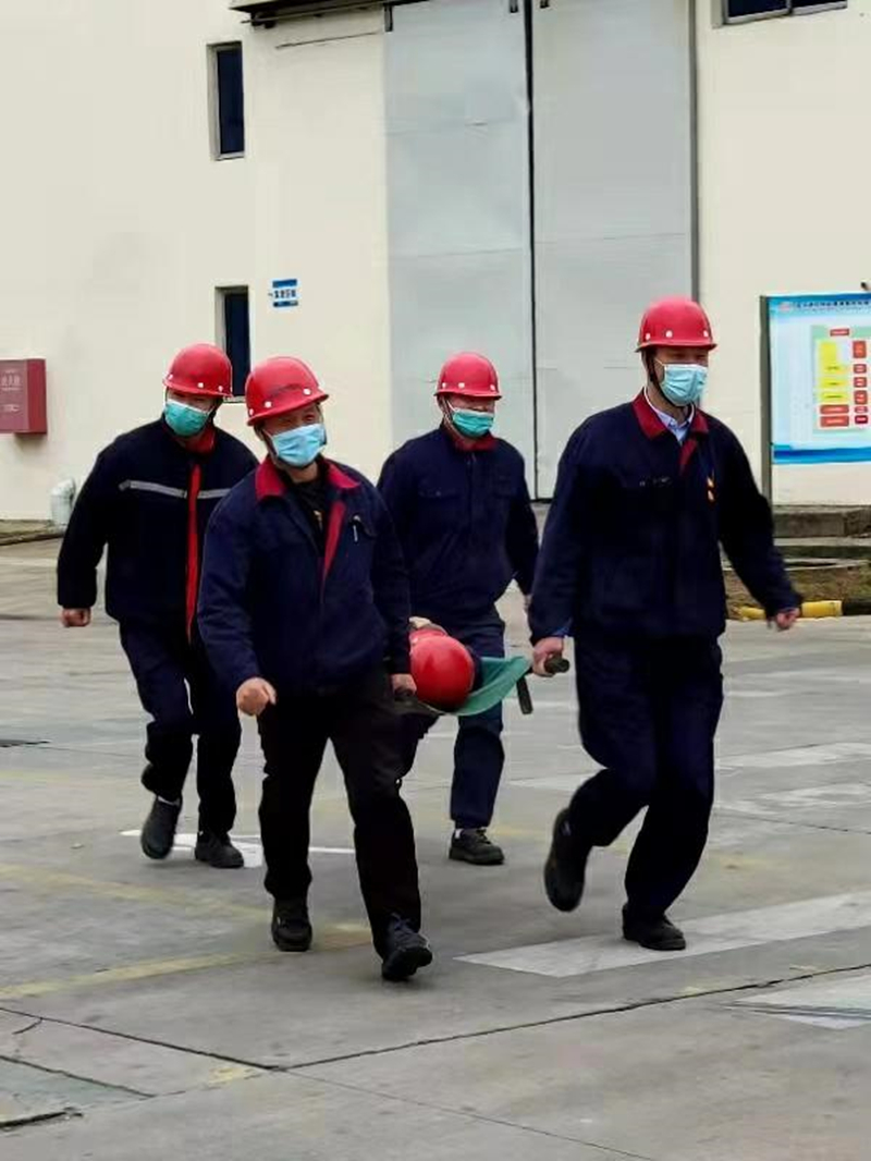 下午14:00消防控制中心檢測到八期胺房可燃?xì)怏w探測器報警,立即通知當(dāng)班操作人員。經(jīng)現(xiàn)場查看確認(rèn)為胺房化學(xué)品發(fā)生泄漏,并有人員暈倒,立即匯報。公司領(lǐng)導(dǎo)啟動應(yīng)急預(yù)案,要求立即開展搶險救援,ERT人員迅速集結(jié)。在現(xiàn)場總指揮的命令下,警戒組、疏散組、救援組、現(xiàn)場處置組各司其職。隔離現(xiàn)場、撤離相關(guān)區(qū)域人員、轉(zhuǎn)移傷員,現(xiàn)場處置組身穿防化服、佩戴防毒面具、攜帶防爆工具進(jìn)入現(xiàn)場,對泄漏點(diǎn)進(jìn)行緊急處置。經(jīng)過緊張?zhí)幚?,事故險情得到控制,現(xiàn)場大氣環(huán)境與水體檢測均達(dá)標(biāo),傷者脫離危險,演練達(dá)到了預(yù)期效果。