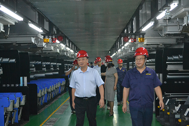 李永良一行人先后參觀了公司展廳、黨員活動室、抖音直播間、八期生產(chǎn)線、自動化包裝線等。參觀過程中,公司總經(jīng)理張斌對我公司的發(fā)展歷程,差別化產(chǎn)品、戰(zhàn)略優(yōu)勢、等進行了詳細介紹。李永良對我公司低溫?zé)嵴澈习本]、抗菌氨綸、驅(qū)蚊氨綸及氨綸生產(chǎn)全流程自動化、智能化生產(chǎn)線等給予了高度評價。希望公司進一步深入實施差別化氨綸及后道特色產(chǎn)品發(fā)展戰(zhàn)略的重大舉措,乘風(fēng)破浪,再創(chuàng)行業(yè)輝煌。