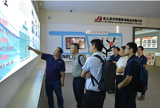 8月13日,省產(chǎn)業(yè)技術(shù)研究院所長(zhǎng)助理蔣根杰一行4人來(lái)氨綸公司蒞臨指導(dǎo)工作。公司總經(jīng)理張斌、副總經(jīng)理張華衛(wèi)、技術(shù)總監(jiān)孫振波陪同調(diào)研。