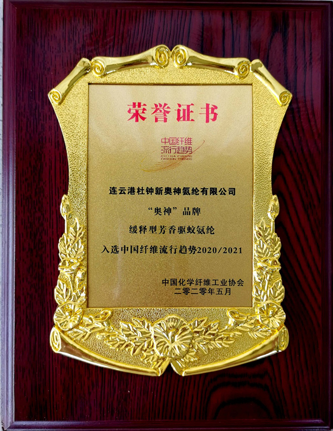 近年來(lái),氨綸公司緊跟時(shí)代步伐,牢牢把握流行趨勢(shì),不斷提升研發(fā)能力,致力于高品質(zhì)、差別化氨綸纖維的研發(fā)、生產(chǎn)和應(yīng)用,先后開(kāi)發(fā)了超柔、高回彈、原液著色、可染、衛(wèi)材、多彩、石墨烯、低溫?zé)嵴澈稀Ⅱ?qū)蚊、抗菌等系列氨綸產(chǎn)品,多項(xiàng)產(chǎn)品處于同行業(yè)前列。此次,氨綸公司“奧神”品牌緩釋型芳香驅(qū)蚊氨綸成功入選“中國(guó)纖維流行趨勢(shì)2020/2021”,再次證明了我公司在市場(chǎng)需求研判及新產(chǎn)品開(kāi)發(fā)方面的實(shí)力,也進(jìn)一步提振了“奧神”品牌的影響力。
