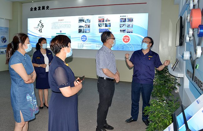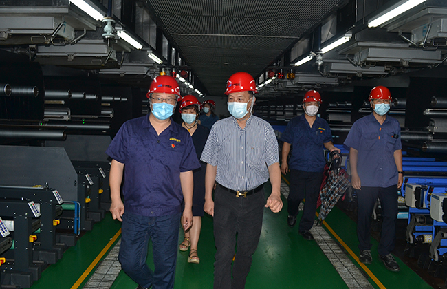 張仲文一行先后參觀了公司產(chǎn)品展廳、八期生產(chǎn)線、研發(fā)中心,公司總經(jīng)理張斌對我公司的發(fā)展歷程,差別化產(chǎn)品、戰(zhàn)略優(yōu)勢等進行了詳細介紹,張仲文對我公司低溫?zé)嵴澈习本]、抗菌氨綸、驅(qū)蚊氨綸及氨綸生產(chǎn)全流程自動化、智能化生產(chǎn)線等給予了高度評價。