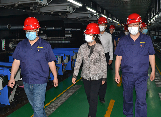 秦云副主席一行先后參觀了公司展廳、黨員活動室、八期生產(chǎn)線、自動化包裝線以及自動化立體庫。參觀過程中,趙書記詳細(xì)介紹了公司發(fā)展歷程、差別化產(chǎn)品性能特點以及公司今年以來在應(yīng)對疫情中工會開展的各項工作等。秦云副主席對我公司工會圍繞中心工作一手抓防疫一手抓生產(chǎn)發(fā)揮的突出作用表示肯定。對公司開展的三鷹計劃實施、和諧班組建設(shè)、員工權(quán)益保障、三進三融助生產(chǎn)等方面的工作稱贊有加。