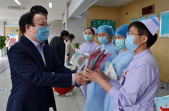 張斌總經(jīng)理表示,在全民共抗疫情的關鍵時期,廣大醫(yī)護工作者挺身而出,向險逆行,日夜奮戰(zhàn),向全世界展示了新時代中國醫(yī)護工作者的勇氣、智慧與擔當。我們希望能通過捐贈活動為連云港市第一人民醫(yī)院疫情防控工作貢獻一份力量,擔負起應有的社會責任。