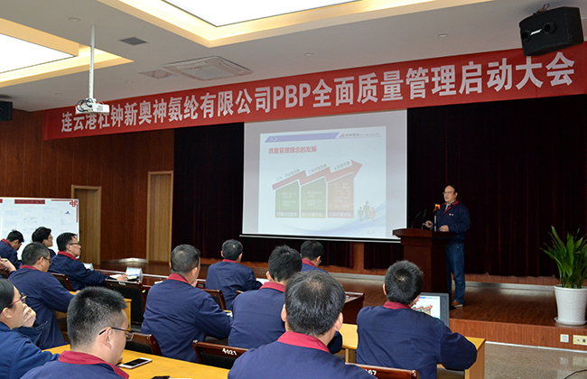 會上,公司總經(jīng)理張斌為啟動大會致辭。在簡要介紹了全面質(zhì)量管理的概念后,張總強(qiáng)調(diào)全面質(zhì)量管理不僅是技術(shù)、管理、統(tǒng)計(jì)的結(jié)合,也是從設(shè)計(jì)、生產(chǎn)、售后服務(wù)的全流程管理,具有十分重要的意義。張總分別從原料管理、設(shè)備管理、工藝管理、操作管理、產(chǎn)品管理五個方面詳細(xì)說明了全面質(zhì)量管理的內(nèi)容及流程,并以俄羅斯名言“農(nóng)場最好的肥料是主人的足跡。足跡越多,收獲越好”,激勵大家全身心投入到全面質(zhì)量管理活動中來。技術(shù)總監(jiān)孫振波詳細(xì)闡述了實(shí)行PBP的目的、PBP的組織機(jī)構(gòu)及PBP的推行計(jì)劃。
