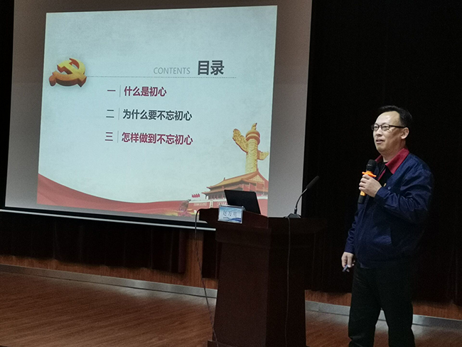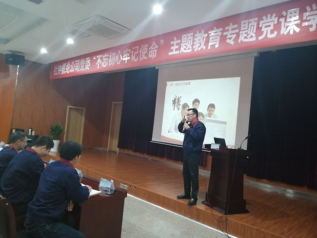 11月9日,氨綸公司黨委召開“不忘初心 牢記使命”主題教育專題黨課學(xué)習(xí)會。公司黨委書記趙萬明同志圍繞“什么是初心、為什么要不忘初心、怎樣做到不忘初心”三個方面進(jìn)行了闡述、講解。學(xué)習(xí)會上,趙書記用生動的案例闡明道理,用詳實的數(shù)據(jù)說明問題,與會代表產(chǎn)生了巨大共鳴。大家一致認(rèn)為這通過堂學(xué)習(xí)會的學(xué)習(xí),大家在精神上受到了洗禮,決心不忘初心、牢記使命,立足本職工作,推動企業(yè)發(fā)展。公司領(lǐng)導(dǎo)班子成員、各部門助理及以上人員、管理部門所有員工和黨員代表參加學(xué)習(xí)會。集團(tuán)指導(dǎo)組領(lǐng)導(dǎo)王果、王琪參加。