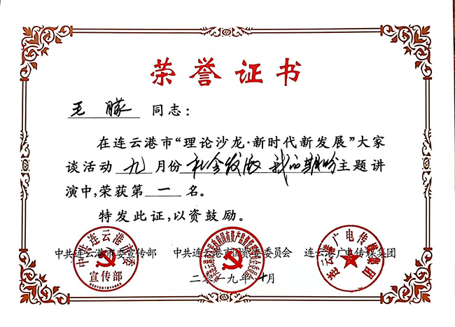 2019年10月11日,由連云港市委宣傳部、市國資委、連云港廣電傳媒集團(tuán)聯(lián)合舉辦的“連云港市‘理論沙龍新時(shí)代新發(fā)展’大家談”活動(dòng)隆重舉行。此次主題演講活動(dòng)的主題是“社會(huì)發(fā)展 我的期盼”。來自贛榆區(qū)稅務(wù)局、市農(nóng)發(fā)局、市交通控股、城投集團(tuán)等12家單位的代表同場(chǎng)競(jìng)技,展開激烈角逐。