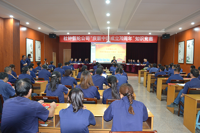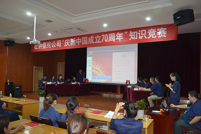 為了切實(shí)加強(qiáng)黨的基層組織建設(shè),增強(qiáng)黨員隊(duì)伍生機(jī)活力,組織引導(dǎo)各黨支部和廣大黨員爭(zhēng)發(fā)展之先、創(chuàng)和諧之優(yōu),以迎接黨的70周年生日。2019年9月26日,氨綸公司“慶新中國(guó)成立70周年”知識(shí)競(jìng)賽在多功能廳舉辦。黨委書記趙萬明、公司總經(jīng)理張斌等領(lǐng)導(dǎo)班子成員出席了本次活動(dòng)。