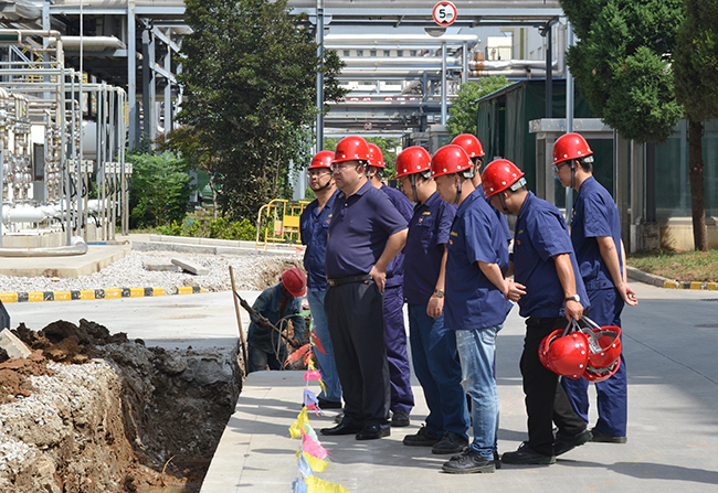 中秋、國慶臨近,為確保節(jié)日期間安全生產(chǎn),9月6日上午集團公司黨委書記、董事長楊龍來氨綸公司檢查安全生產(chǎn)工作。公司黨委書記趙萬明、總經(jīng)理張斌、副總經(jīng)理楊森陪同。