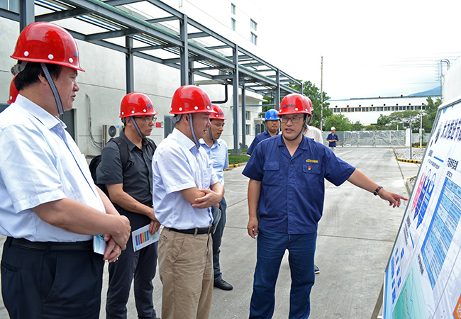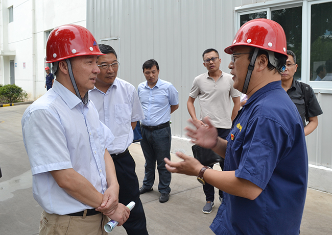 2019年8月12日,由省統(tǒng)計局副局長周國強帶隊的省政府能源消耗“雙控”目標現(xiàn)場考核組來我市考核走進氨綸公司。副市長徐家保、市工信局局長董作村、工投集團董事長楊龍陪同。